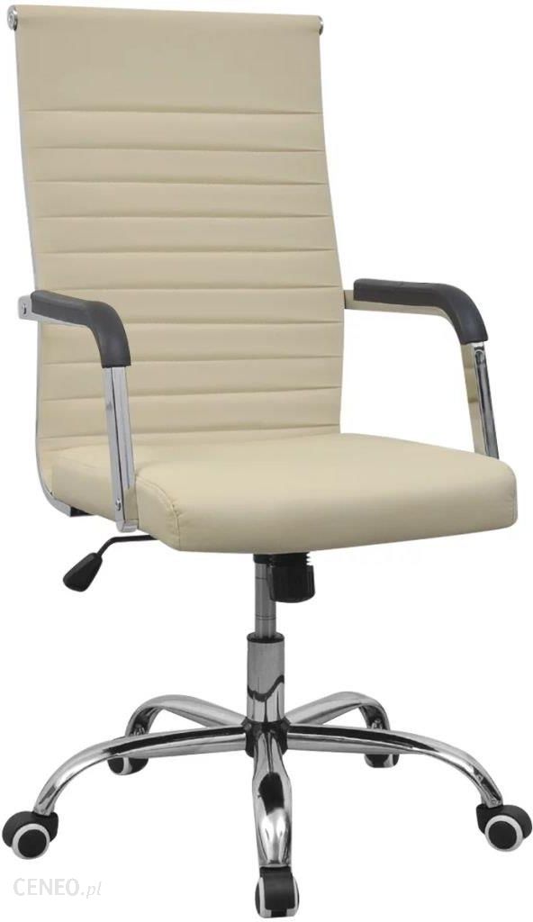 Kolor: kremowy Materiał: rama ze sklejki + obicie z materiału PU + chromowana podstawa Wymiary ogólne: 55 x 63 x (98,5-106,5) cm (szer. x gł. x wys.)Szerokość siedziska: 49 cmGłębokość siedziska: 50,5 cm Wysokość siedziska od ziemi: 43,5-51,5 cmWysokość oparcia: 59,5 cmRegulowana wysokośćZ 5 nylonowymi kółkamiŁatwy montażMateriał: Bawełna: 10%, Poliester: 30%, Poliuretan: 60%
