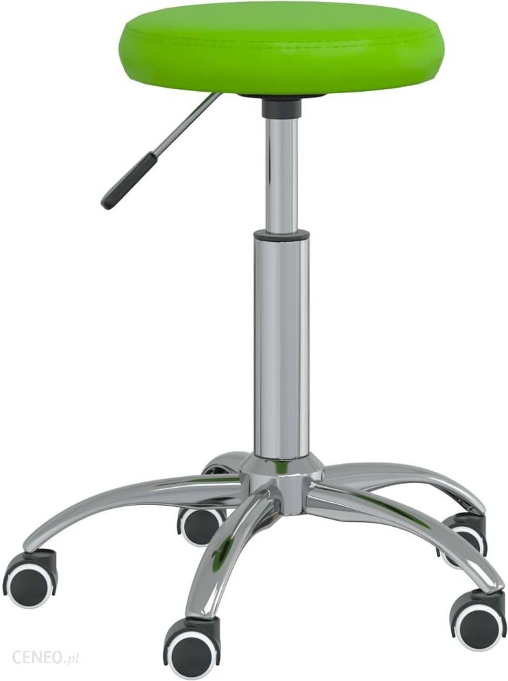 Kolor: zielony Materiał: sztuczna skóra (60% PU, 30% poliester, 10% bawełna), chromowana stalWymiary: 31 x (42-54) cm (śr. x wys.)Możliwość obrotu o 360 stopniSkrętne kółkaPodnośnik gazowyWymagany montaż: tak